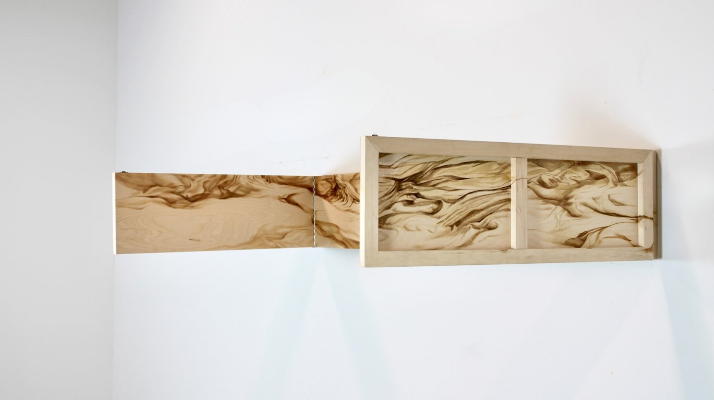 What, then, occurs when painting—historically the medium of illusion—is directed not to conceal, but to exaggerate the illusion already embedded within the surface? When paint does not cover but extends the grain? When brushstroke and woodgrain become indistinguishable, not in the pursuit of trompe l’oeil, but in the collapsing of categories: medium and ground, tool and object, human intention, and mechanical repetition?